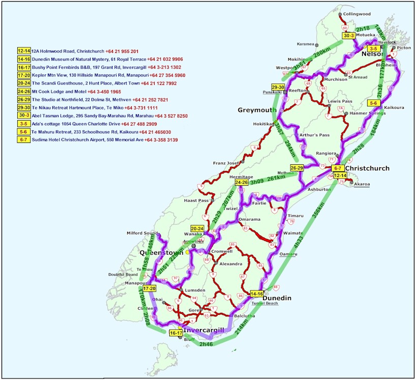 Carte du circuit néo-zélandais originellement prévu