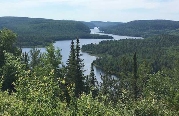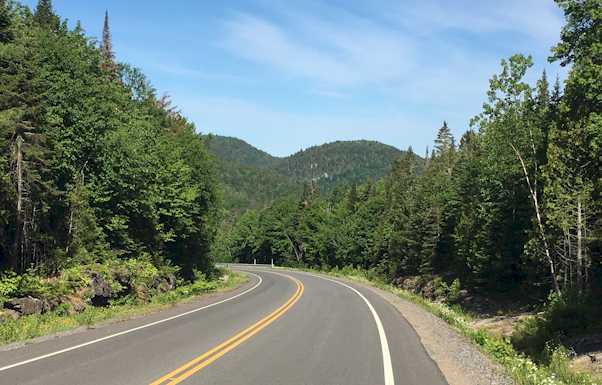 ![]() | Parc de la Mauricie Traversée d'ouest en est de la route du parc: 62 kilomètres et 1200 mètres de dénivelé positif sur une route récemment refaite Haut gauche: peu après le départ Haut droite: Lac Wapizgonke à proximité du lieu dit 'le Passage' Bas gauche: Rivière Saint-Maurice au niveau de Grandes Piles (halte Mékinac) (photos Patrice Marcotte, 13 juin 2021) |