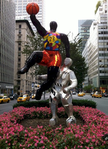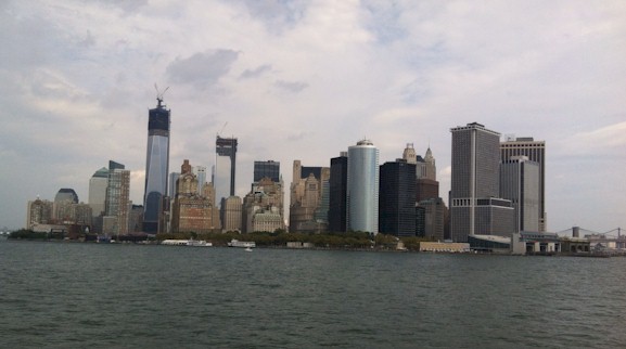New York: Vue depuis le traversier de Staten Island (gauche) et statue de Niki de Saint Phalle (Park Avenue)