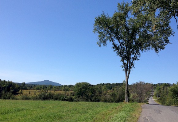 La photo de la ferme Alden Olmstead est prise de la rue de la Rivière.