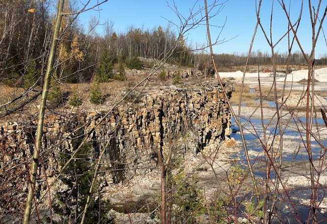 «D'après les photographies et la localisation mentionnée je crois que c'est la carrière abandonnée de Henrysburg (ou de Désourdy?) qui renferme en majorité des dolomies (identifiées principalement par la couleur et le litage visible sur les photographies) et possiblement des calcaires. Ces roches carbonatées font partie stratigraphiquement, dans cette région, du Groupe de Beekmantown vieux d'environ 480 millions d'années.» Jean Beaulieu