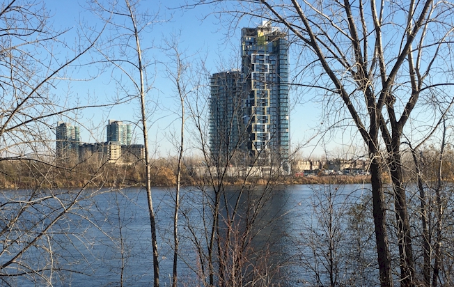 Vue sur la pointe nord de l'Île des Soeurs (haut gauche),