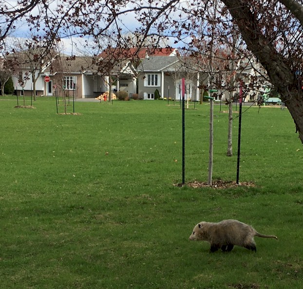 Iberville: un marsupial (opossum de Virginie) se promène tranquillement